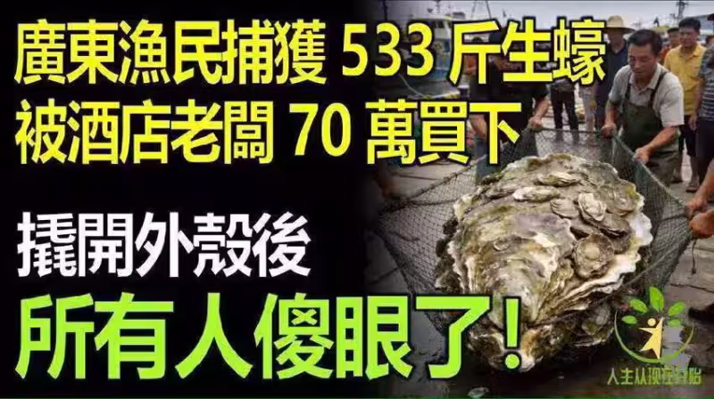 廣東漁民捕獲533斤生蚝,被酒店老闆當場70萬買下,撬開外殼後,所有人傻眼了!!!