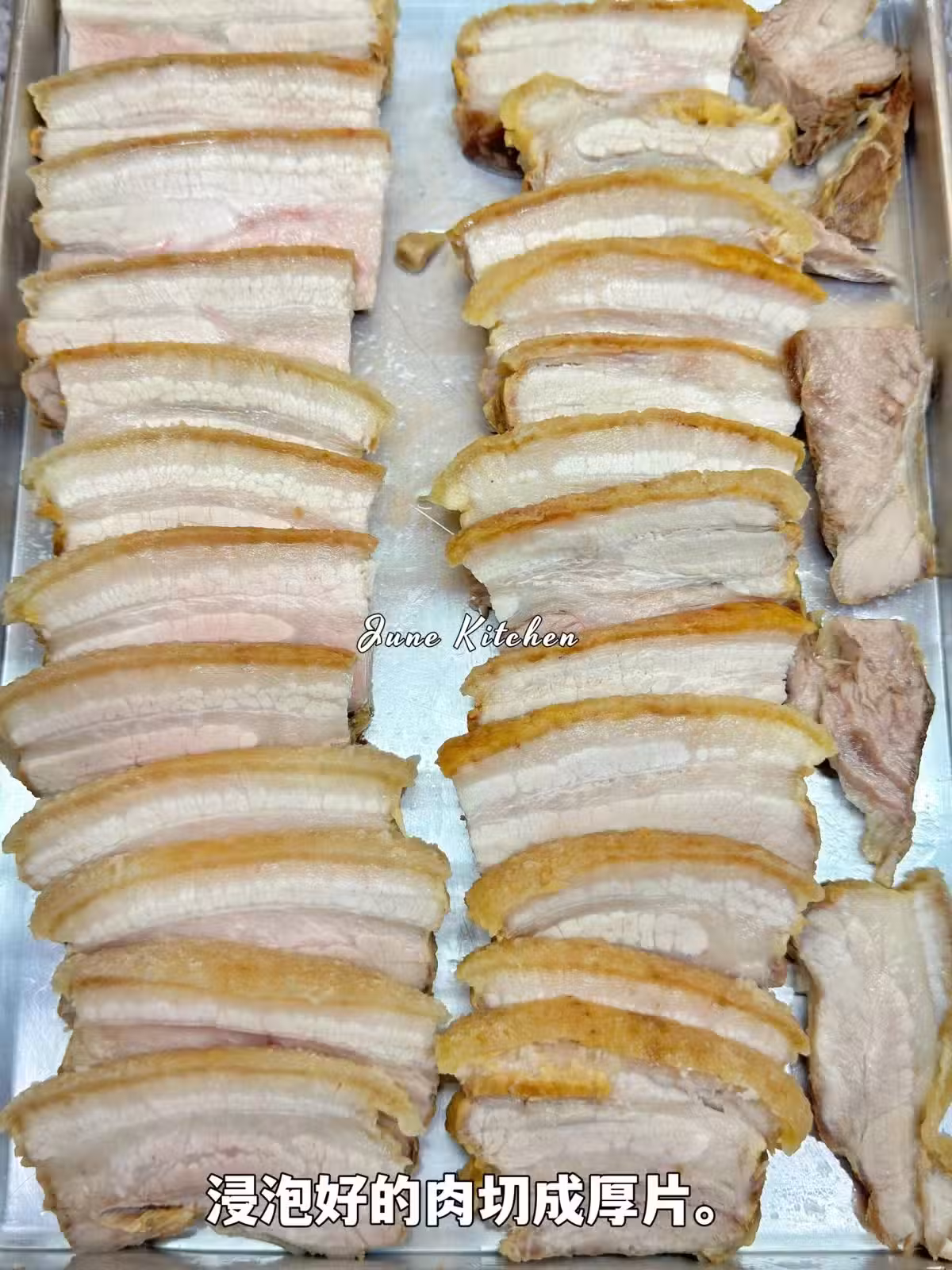 4️⃣浸泡好的肉切成厚片。