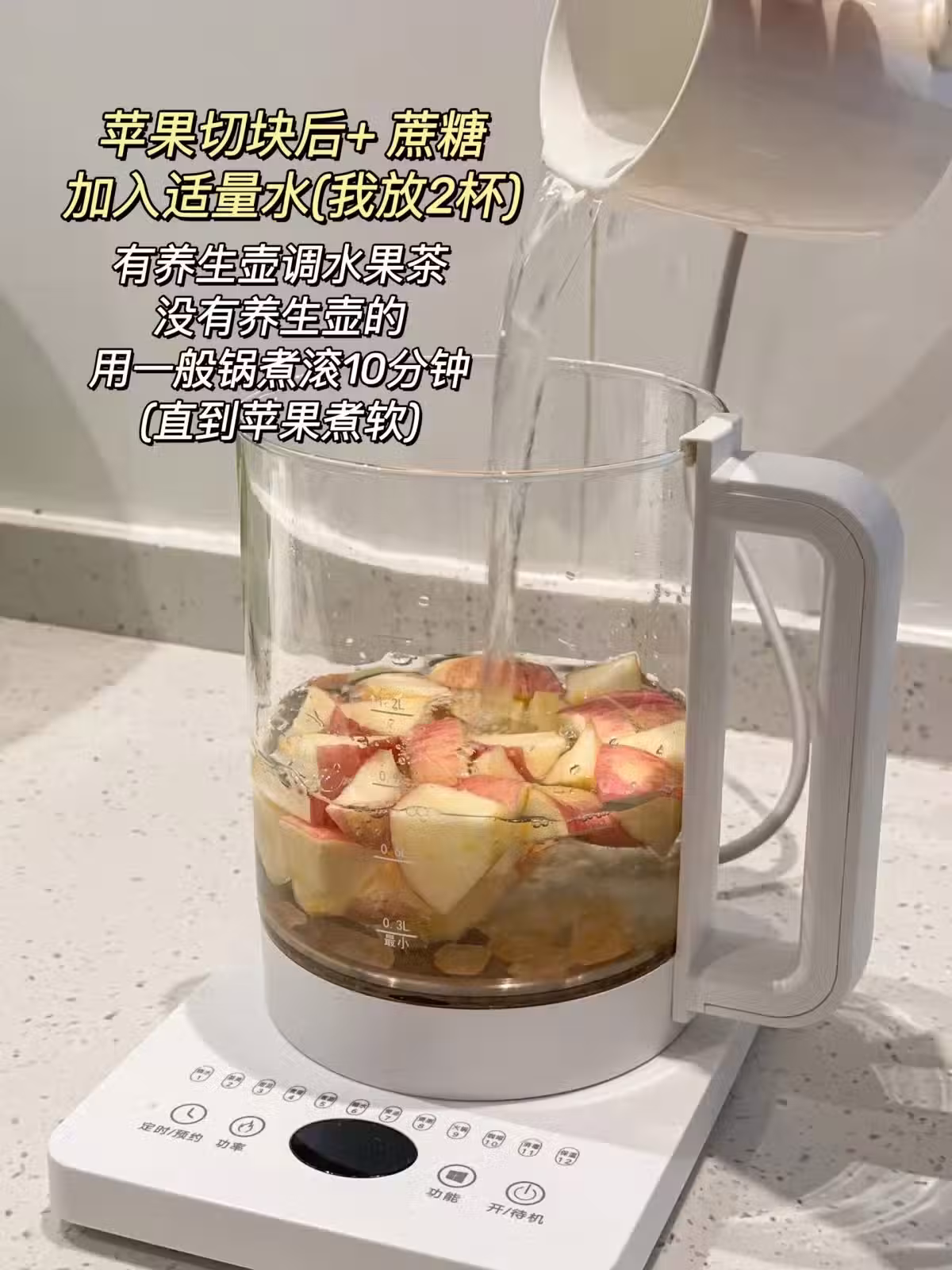 做法:把蘋果蔗糖一起煮,直到蘋果煮軟,就把茶包悶出茶味就可以飲用啦(茶包不要煮/悶太久擔心苦味哦)