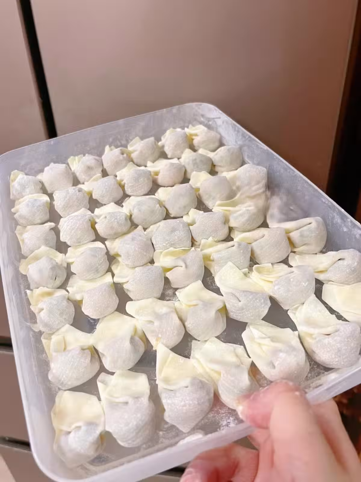 調好的餡放冰箱冷藏半小時更好包,按平時自己的喜好包就好。可以買現成的餛飩皮,只需要自己調餡料就可以輕鬆搞定快手早餐了。