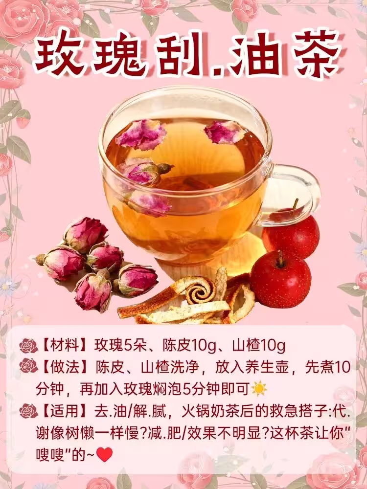 【材料】玫瑰 5 朵、陳皮 10g、山楂 10g