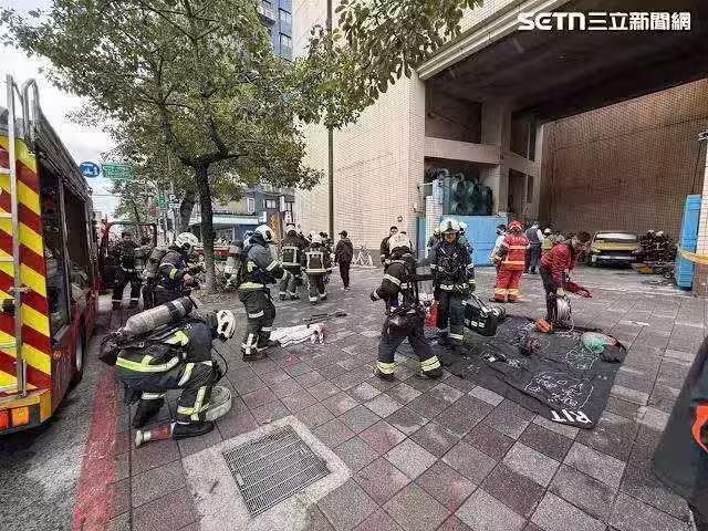 現場冒出黑煙,台北市消防局獲報後派遣大批警消人車趕赴現場處理。