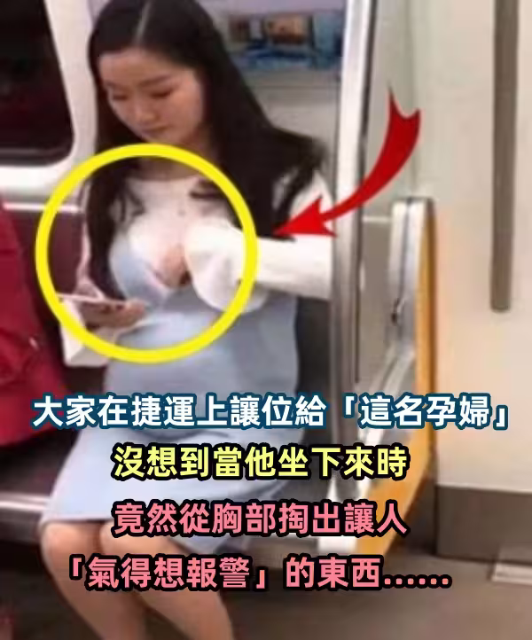 大家在捷運上讓位給「這名孕婦」,沒想到當他坐下來時,竟然從胸部掏出讓人「氣得想報警」的東西......