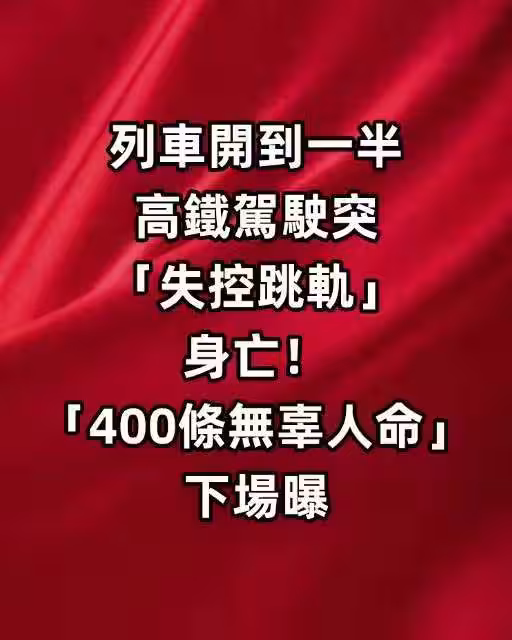 突發/列車開到一半... 高鐵駕駛突「失控跳軌」身亡「400條無辜人命」下場曝