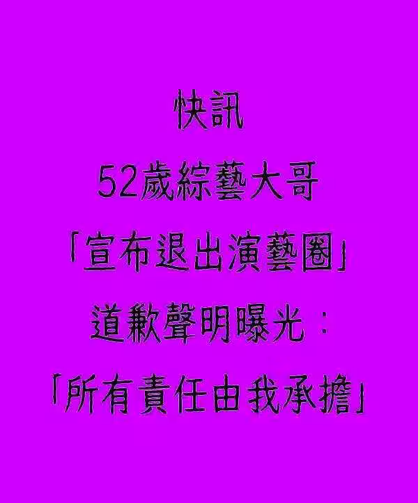 快訊/ 52歲綜藝大哥「宣布退出演藝圈」道歉聲明曝光:「所有責任由我承擔」