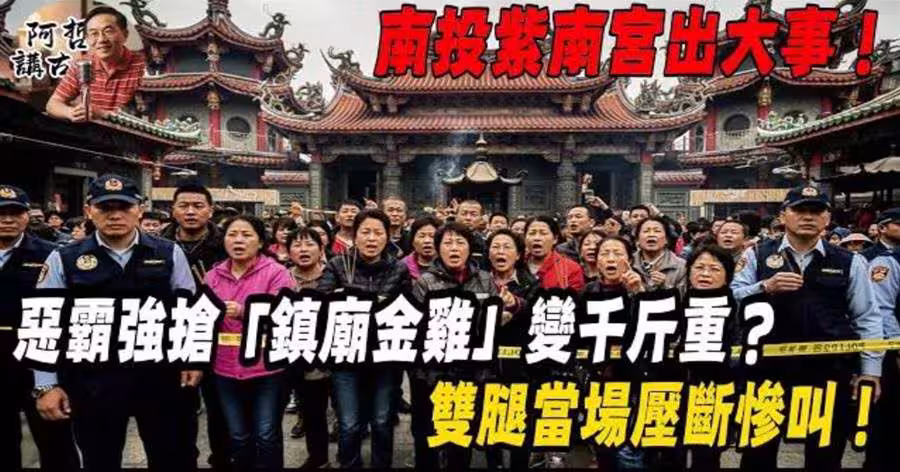 南投紫南宮早上出大事!!惡霸強搶「鎮廟金雞」神像突然「變重千斤」!雙腿當場被壓斷的慘叫聲,響徹雲霄!