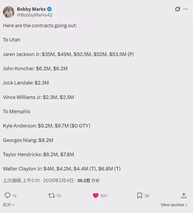 當然,交易特例也可以留著不用,這樣能減輕球隊薪資壓力。距離交易截止日僅剩不到48小時,看看灰熊後續怎麼使用這個交易特例吧。隨著3J被灰熊交易,2018年所有樂透秀當中,只有黃蜂12號秀邁爾斯-布里奇斯沒有換隊。