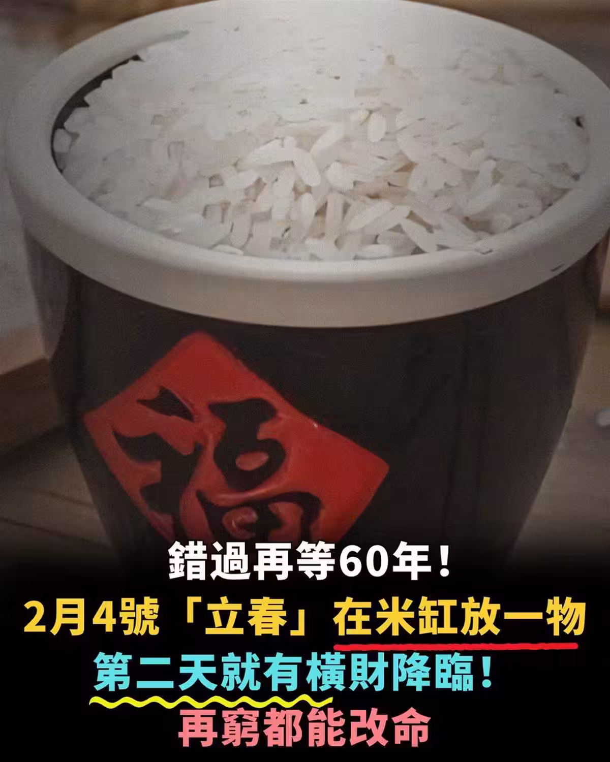 錯過再等60年!!! 2月4號「立春」在米缸放一物, 第二天就有橫財降臨 ,再窮都能改命