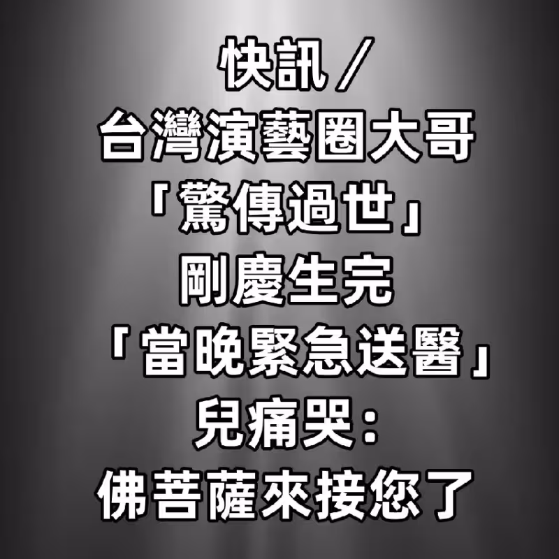 快訊/台灣演藝圈大哥「驚傳過世」!剛慶生完「當晚緊急送醫」兒痛哭:佛菩薩來接您了