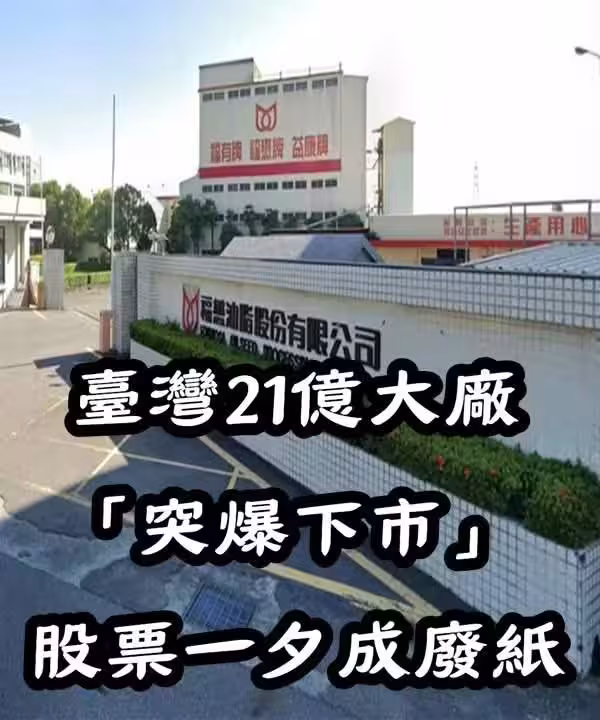 台灣沙拉油大廠、上櫃公司「福懋油」(1225)股票停止交易,