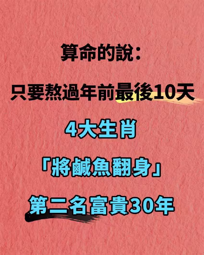 算命的說: 只要熬過年前最後10天, 4大生肖「將鹹魚翻身」, 第二名富貴30年