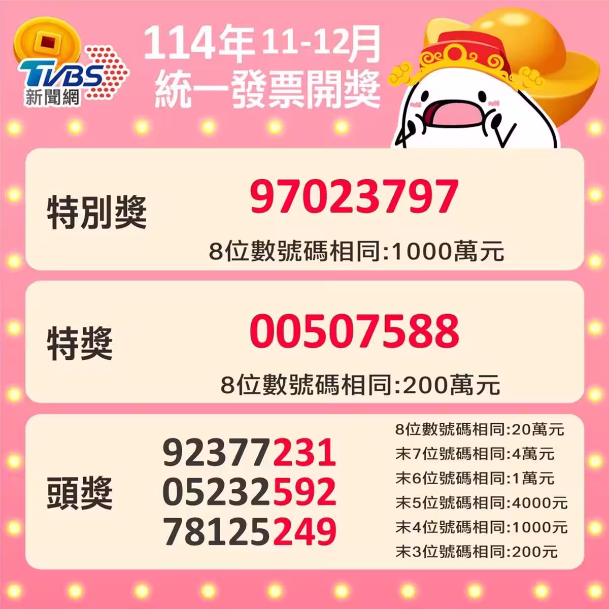快訊/全聯花607元中1000萬統一發票!特獎200萬2張,獎落這3縣市