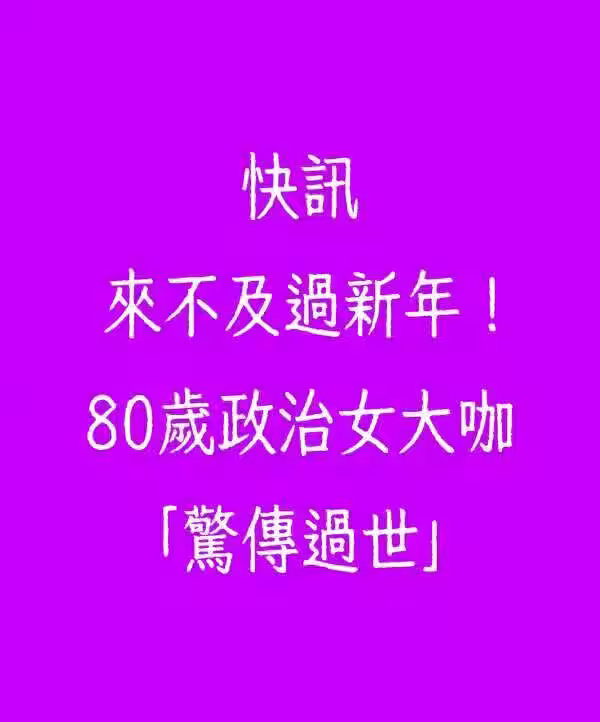 快訊/來不及過新年!!! 80歲政治女大咖 「驚傳過世」