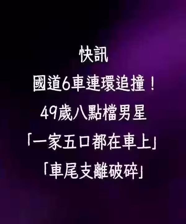 沒想到,近日他開車載全家南下時,卻驚傳6車連撞事故... 最新現況曝光!