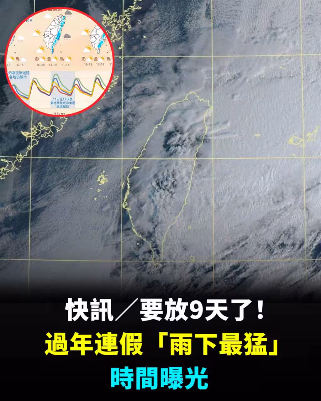 快訊/ 要放9天了!!! 過年連假「雨下最猛」時間曝光