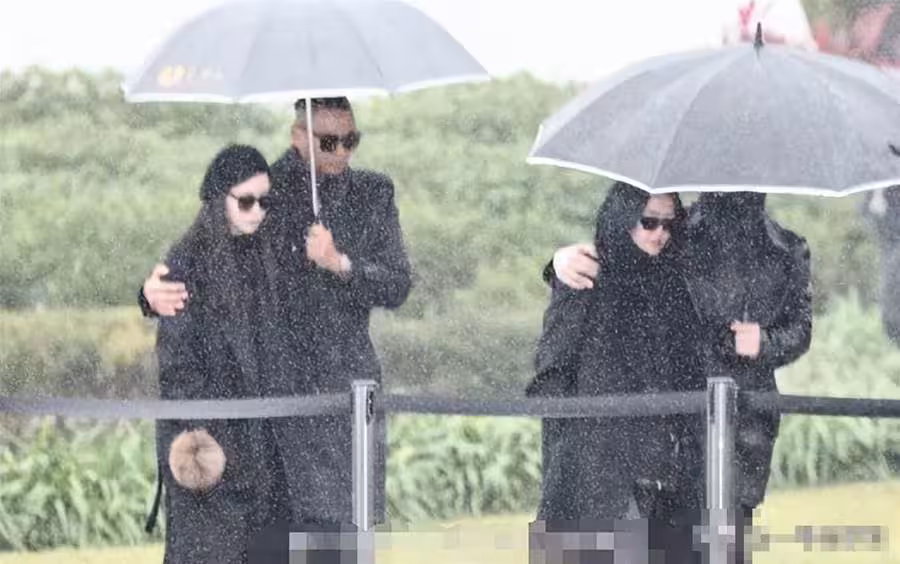 和其他人相比,具俊曄則是身穿卡其色外套,和S媽一起打傘現身,看得出兩個人的關係很好,S媽還一隻手挽著好女婿,現場氛圍依舊還是很凝重,看得出他們還是沒有走出大S離世的悲傷。