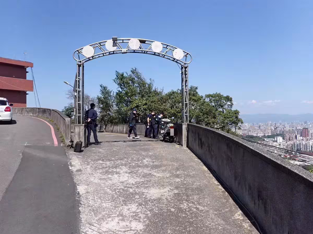86歲陳姓老翁在小年夜獨自騎機車前往新北市中和烘爐地,卻在抵達後不明原因翻越女兒牆,摔落約四層樓高邊坡身亡。(圖/翻攝畫面)