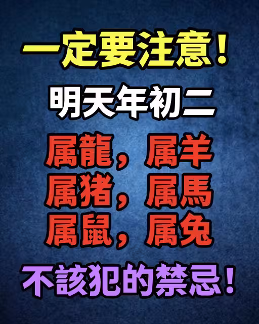 一定要注意!明天年初二 屬龍,屬羊,屬豬,屬馬,屬鼠,屬兔 不該犯的禁忌!