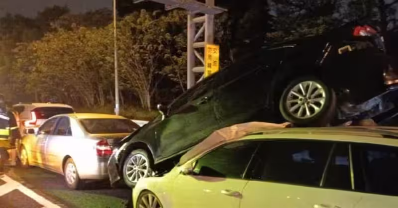 國道1號高架南向70.4公里內側車道,發生5輛自小客車連環追撞事件。