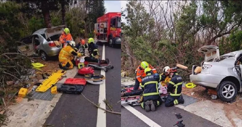 不料在行經港子村路段時,車輛突然失控撞上路樹,造成車體嚴重毀損。