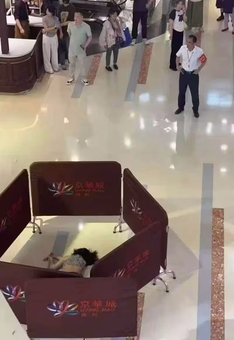 一名年輕貌美的女子,疑似與男友爆發激烈口角,竟當眾從百貨公司四樓縱身一躍!