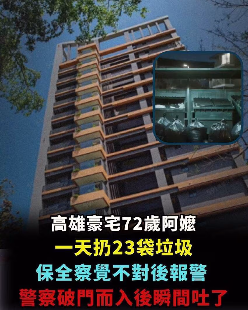 高雄豪宅72歲阿嬤一天扔23袋垃圾,保全察覺不對後報警,警察破門而入後瞬間吐了...