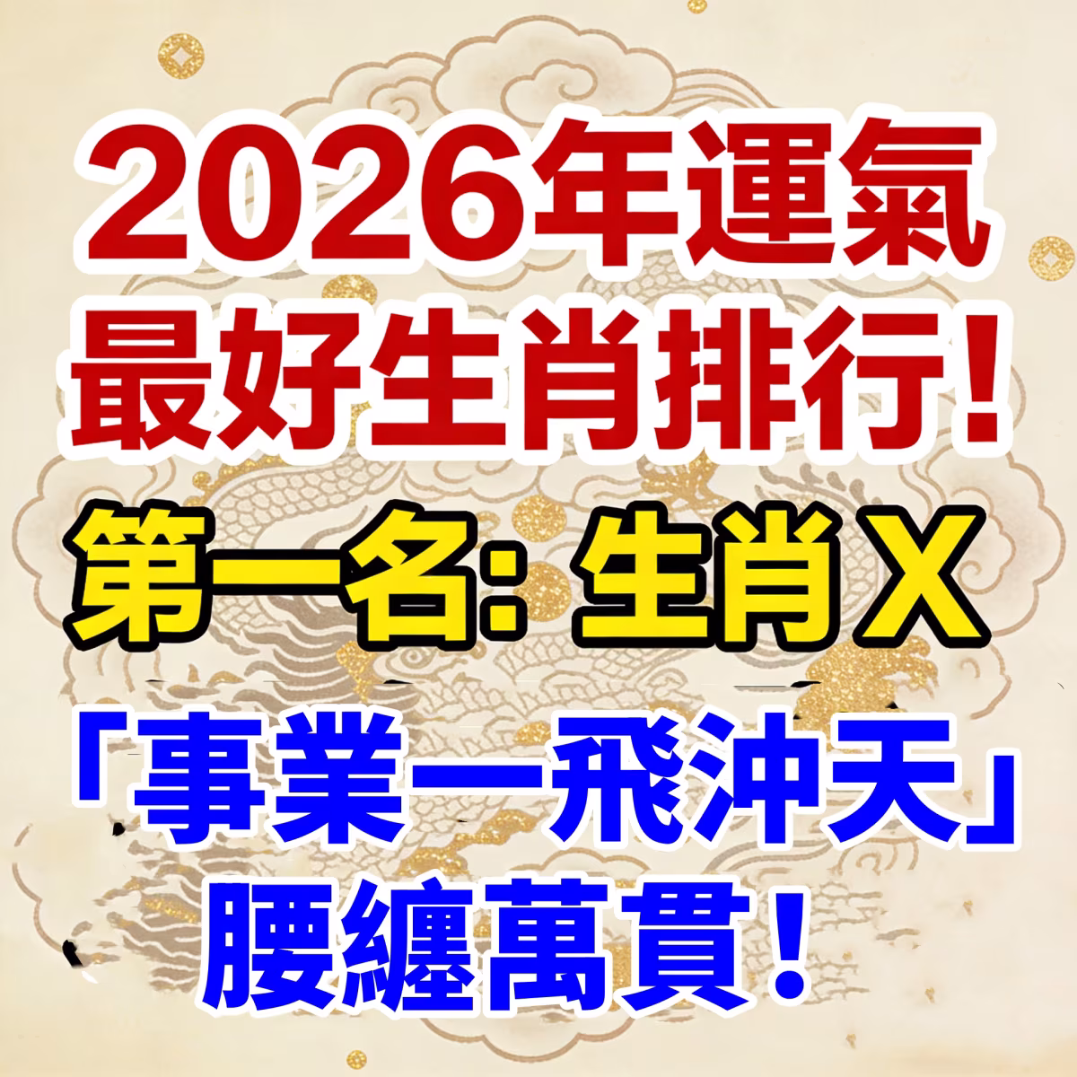 以下為2026年整體運勢表現較亮眼的生肖排行,從風水與流年角度綜合分析——