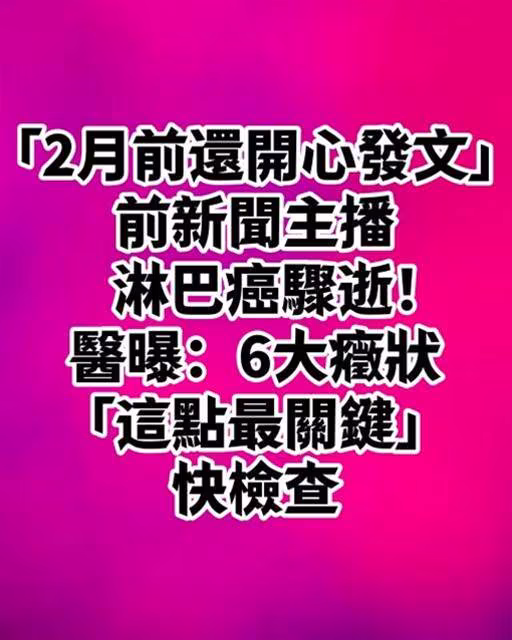 「2月前還開心發文」前新聞主播淋巴癌驟逝!醫曝:6大症狀「這點最關鍵」快檢查