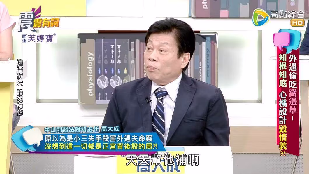 事後,高大成將遺體帶回解剖,竟發現遺體內有砒霜和威而鋼的成分,推測男子中毒,遂依此配合警方探查,終於查出真相。
