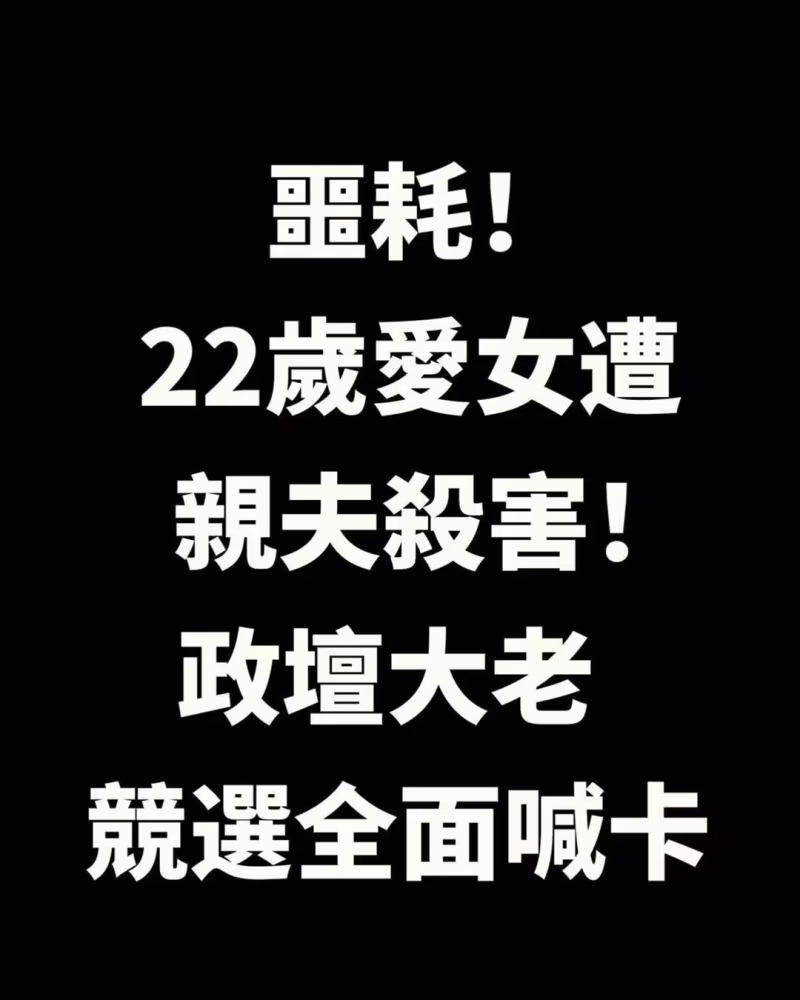 噩耗!22歲愛女遭親夫殺害!政壇大老「競選全面喊卡」