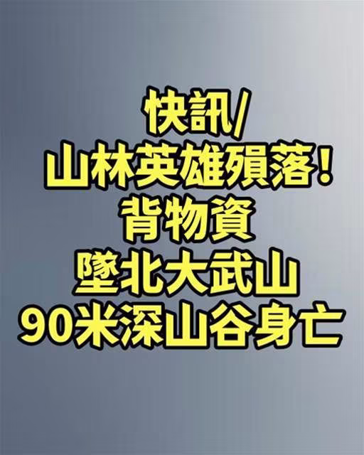 屏東縣泰武鄉北大武山昨(6)日上午發生山難,在登山界小有名氣的58歲蔡姓高山協作員,當天與其他協作員一同背負物資前往檜谷山莊途中,於2公里處不慎跌落約90米深的陡峭山谷,搜救人員趕抵現場時已無生命跡象,經送醫搶救仍宣告不治。
