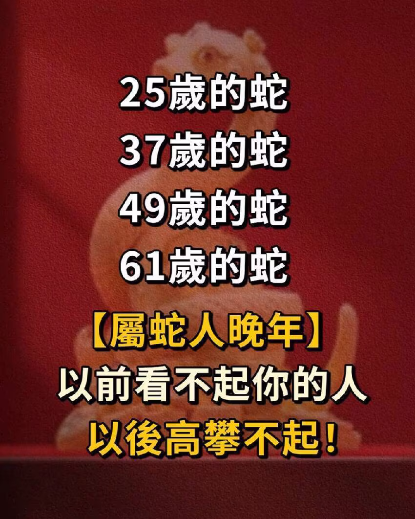 25歲的蛇,37歲的蛇,49歲的蛇,61歲的蛇 【屬蛇人晚年】 以前看不起你的人, 以後高攀不起