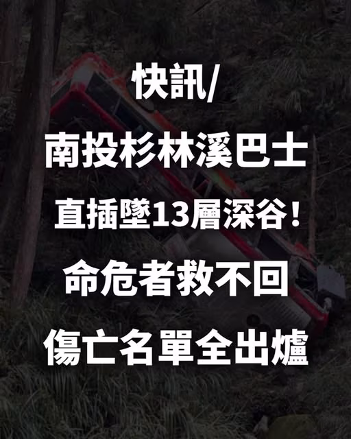快訊/ 南投杉林溪巴士「直插墜13層樓深谷」!命危者救不回「傷亡名單」全出爐
