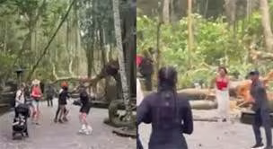 當時現場湧入大量遊客,未料大樹突然應聲斷裂,造成3名女性遊客遭到波及。