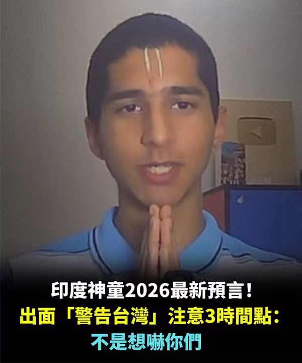 印度神童2026最新預言!出面「警告台灣」注意三時間點:不是想嚇你們....