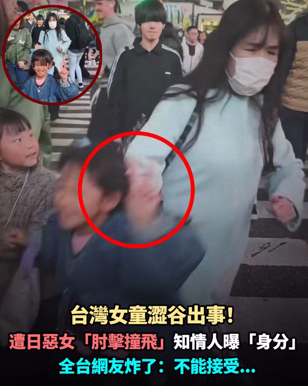 台灣女童澀谷出事!!! 遭日惡女「肘擊撞飛」知情人曝「身份」全網友炸了:不能接受