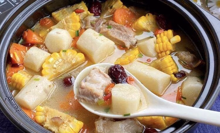 這款湯菜富含蛋白質和碳水化合物,具有很高的營養價值,尤其是山藥和玉米,它們都含有豐富的膳食纖維,能夠促進消化和吸收。