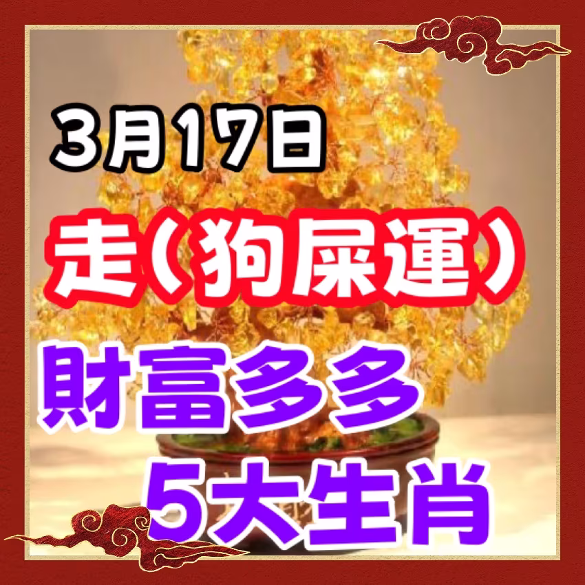 而在2025年3月17日這一天,有五大生肖將迎來財運爆棚的好運勢,甚至有機會走上「狗屎運」,在財富方面收穫滿滿。