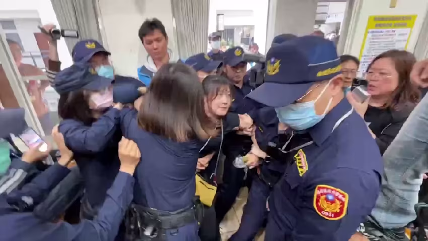 過程中張淑芬狠咬女警,現場的男女警也不好過,不斷遭架拐子、推擠,也有民眾大喊「警察打人」,現場合計一共2人被強制帶離,目前衝突仍未完全結束。