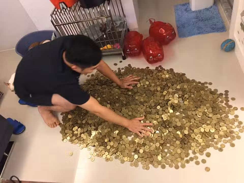 宰豬公救經濟!存4年硬幣「灑出來變黃金地毯」 結算「50公斤私房錢」網嗨:可以付頭期款