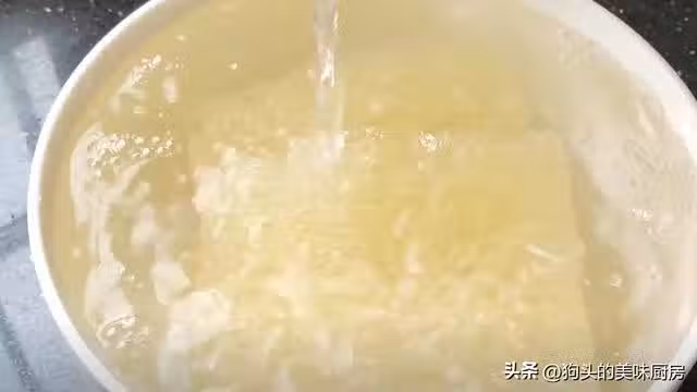 2.準備一塊牛肉,用刀切成薄片。一定要逆著紋理切,這樣它在熟透的時候不會縮在一起,口感鬆軟嫩滑。