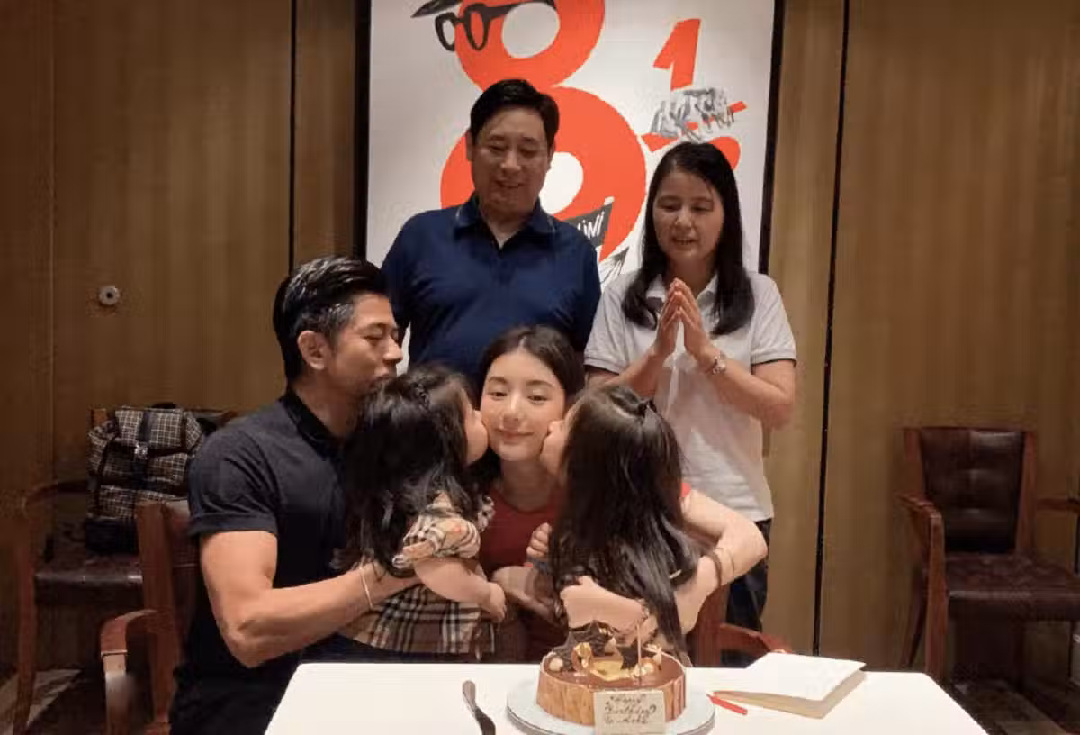 方媛春節曬全家福,57歲郭富城頭髮烏黑,倆女兒一個像爸一個像媽_生活_母女倆_毛衣