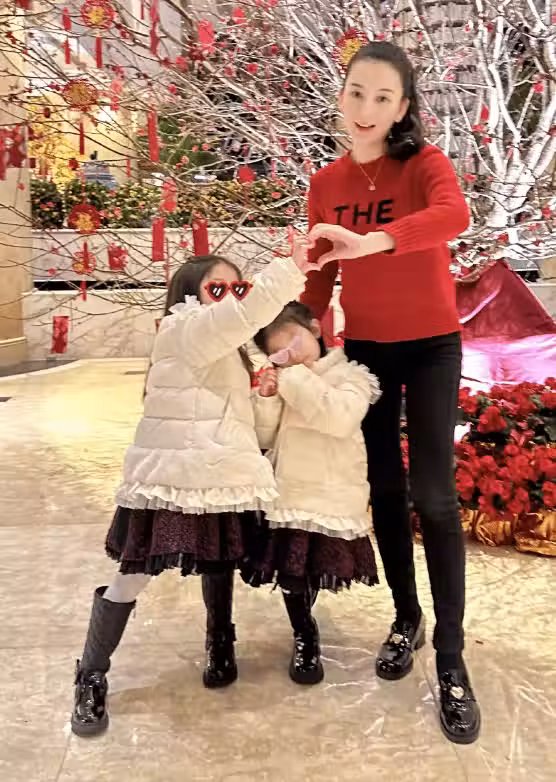 方媛春節曬全家福,57歲郭富城頭髮烏黑,倆女兒一個像爸一個像媽_生活_母女倆_毛衣