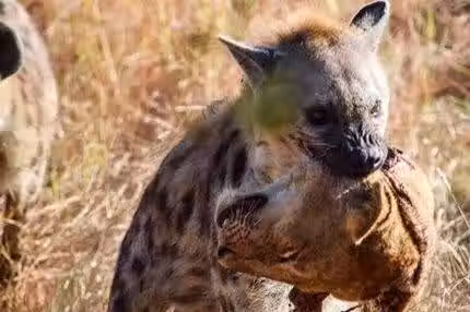 在鬣狗嘴裡叼著的是一隻受傷落單的母獅頭顱,到底誰才是王?_成年_獅子_人類