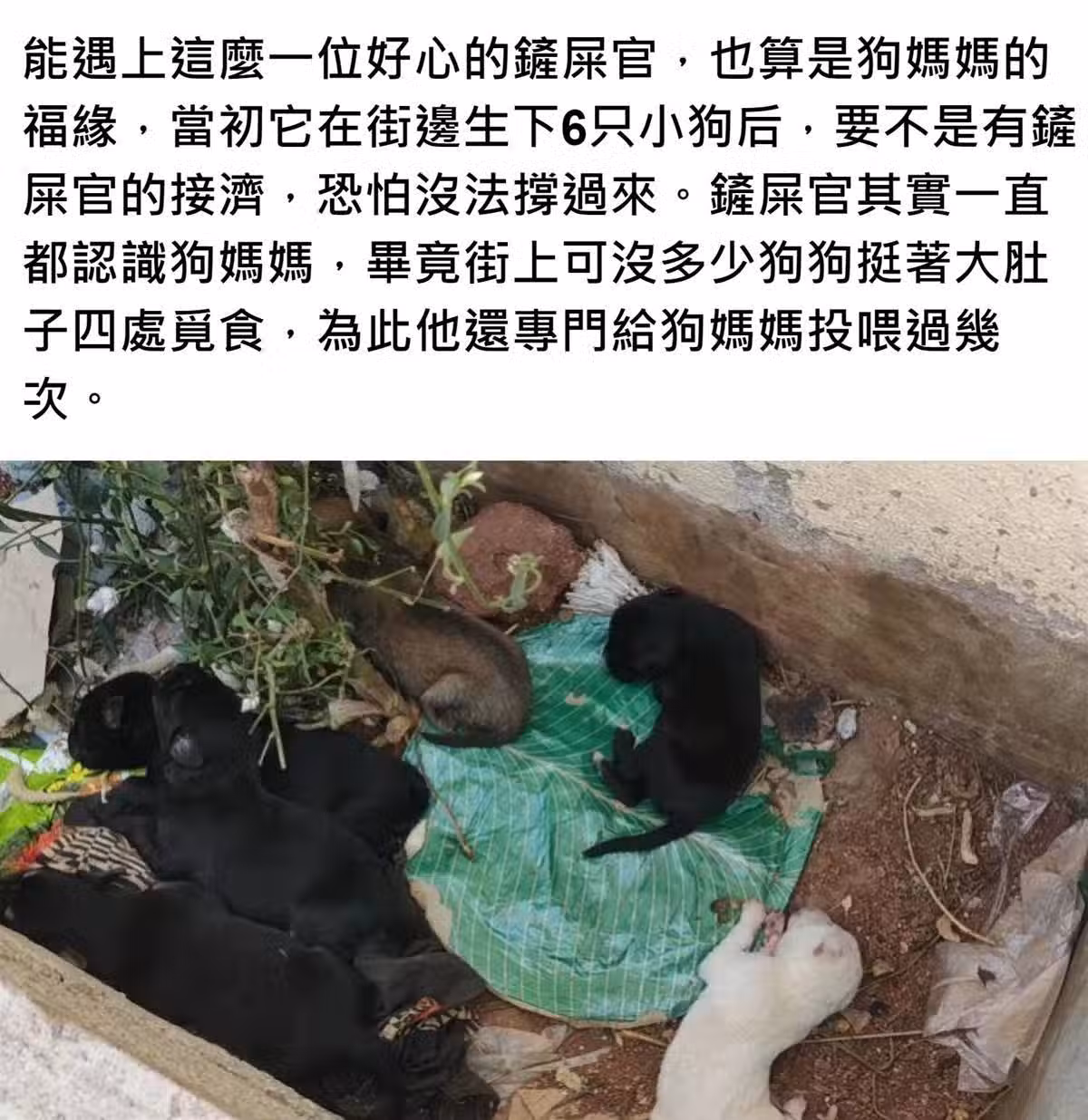 流浪狗無地可去,卻在街邊產子,寸步不離6隻小狗,母愛真無私