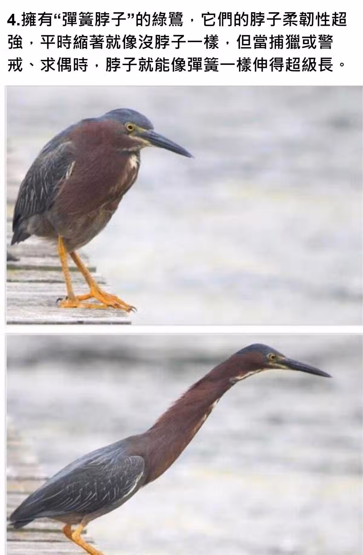 14張難得一見的罕見事物照,擁有「彈簧脖子」的綠鷺,看完讓人大開眼界