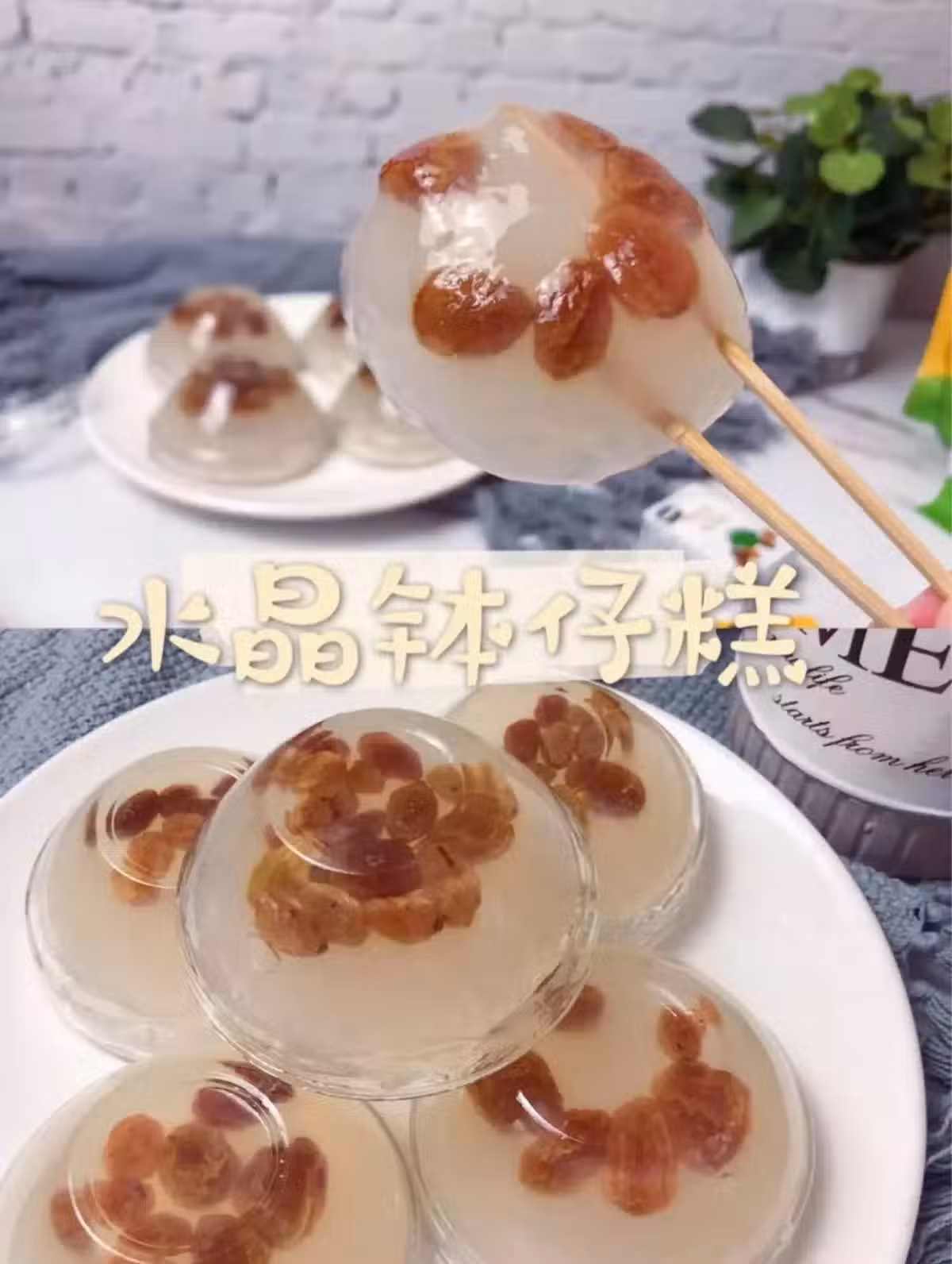 食材:木薯粉 100g/清水 200g/白糖 1勺/葡萄乾 適量