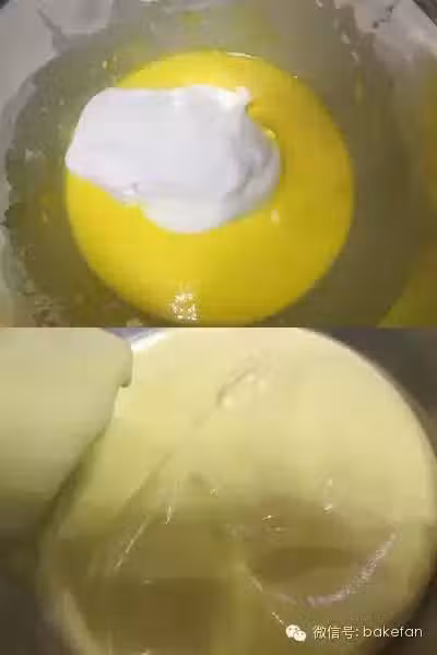 因為蛋糕糊含有很多氣泡,比重輕,所以無懸念飄在布丁層上面。