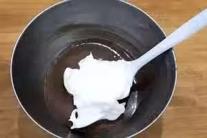 再把芝士糊全部倒入盛蛋白的盆中,翻拌均勻,直到蛋白和芝士糊充分混合。