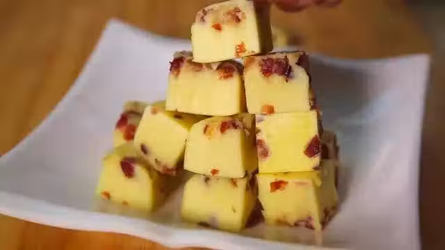 5、雞蛋涼糕的做法其實非常簡單,如果您不喜歡吃蔓越莓,可以放點葡萄乾、桔子乾等自己喜歡吃的乾果,隨心換一下。